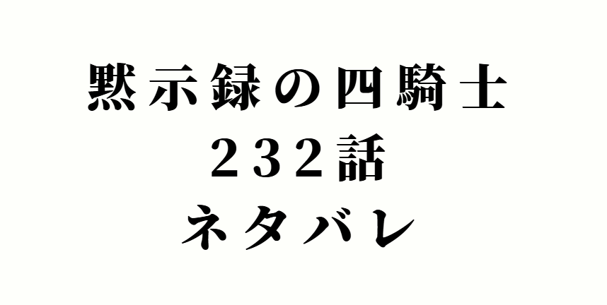 【黙示録の四騎士】第232話ネタバレと感想・考察!最新話の見どころを徹底解説