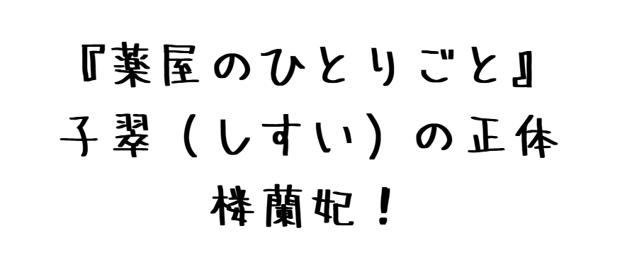 『薬屋のひとりごと』で猫猫(マオマオ)の友人として登場した虫好きな女官・子翠(しすい)。一見ただの明るい下女のように見える彼女ですが、その正体は後宮の上級妃「楼蘭妃(ろうらんひ)」だったという驚愕の事実が明らかになります。 本記事では、子... -