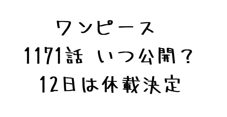 ワンピース 1171話 いつ公開?12日は休載で19日の週刊少年ジャンプで発売